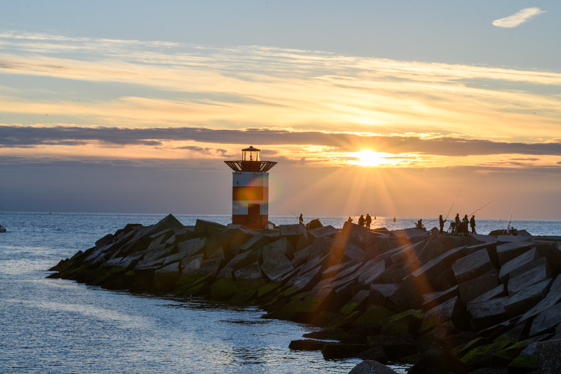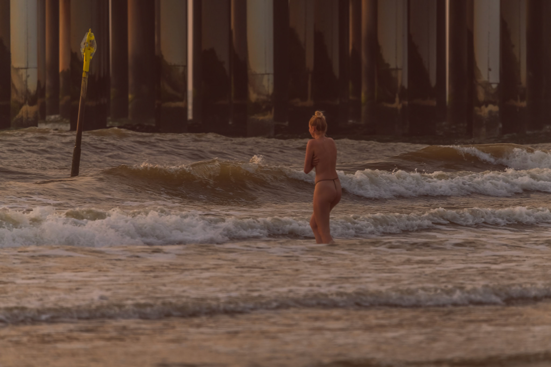 A padel boarder crosses the setting sun just after 22:00 in Scheveningen