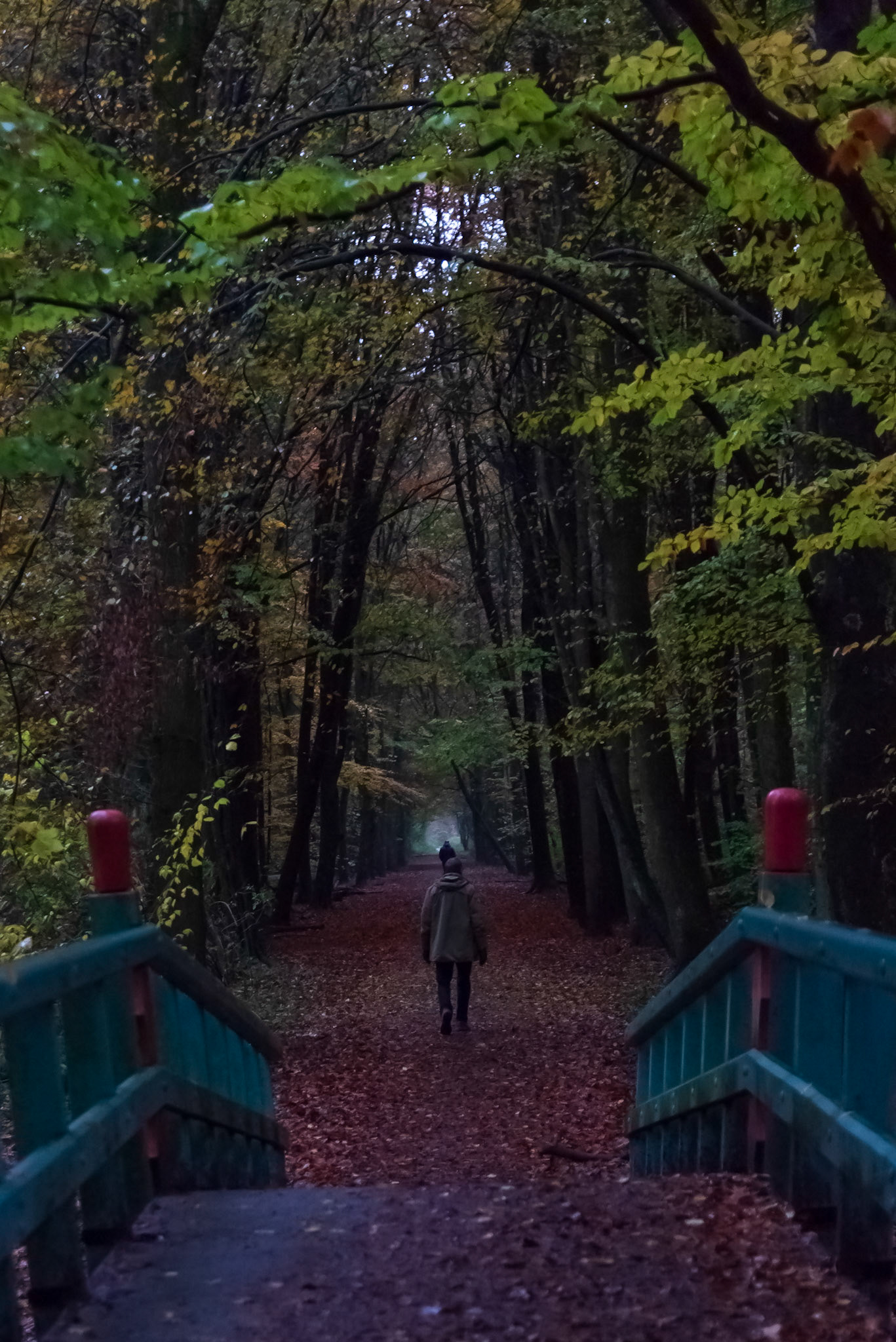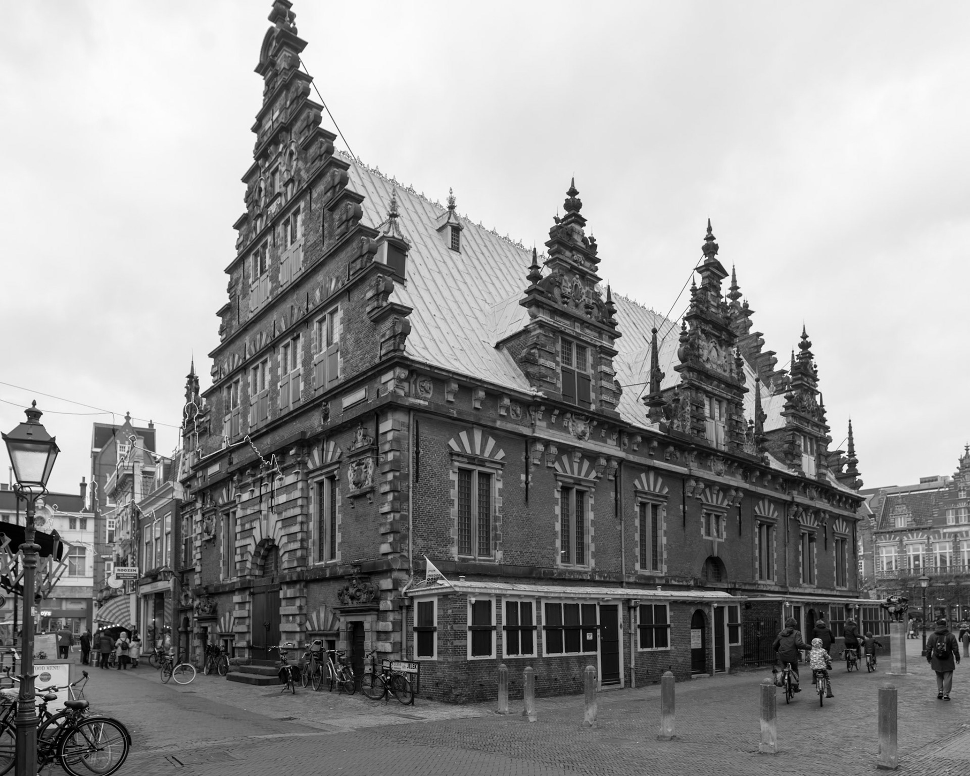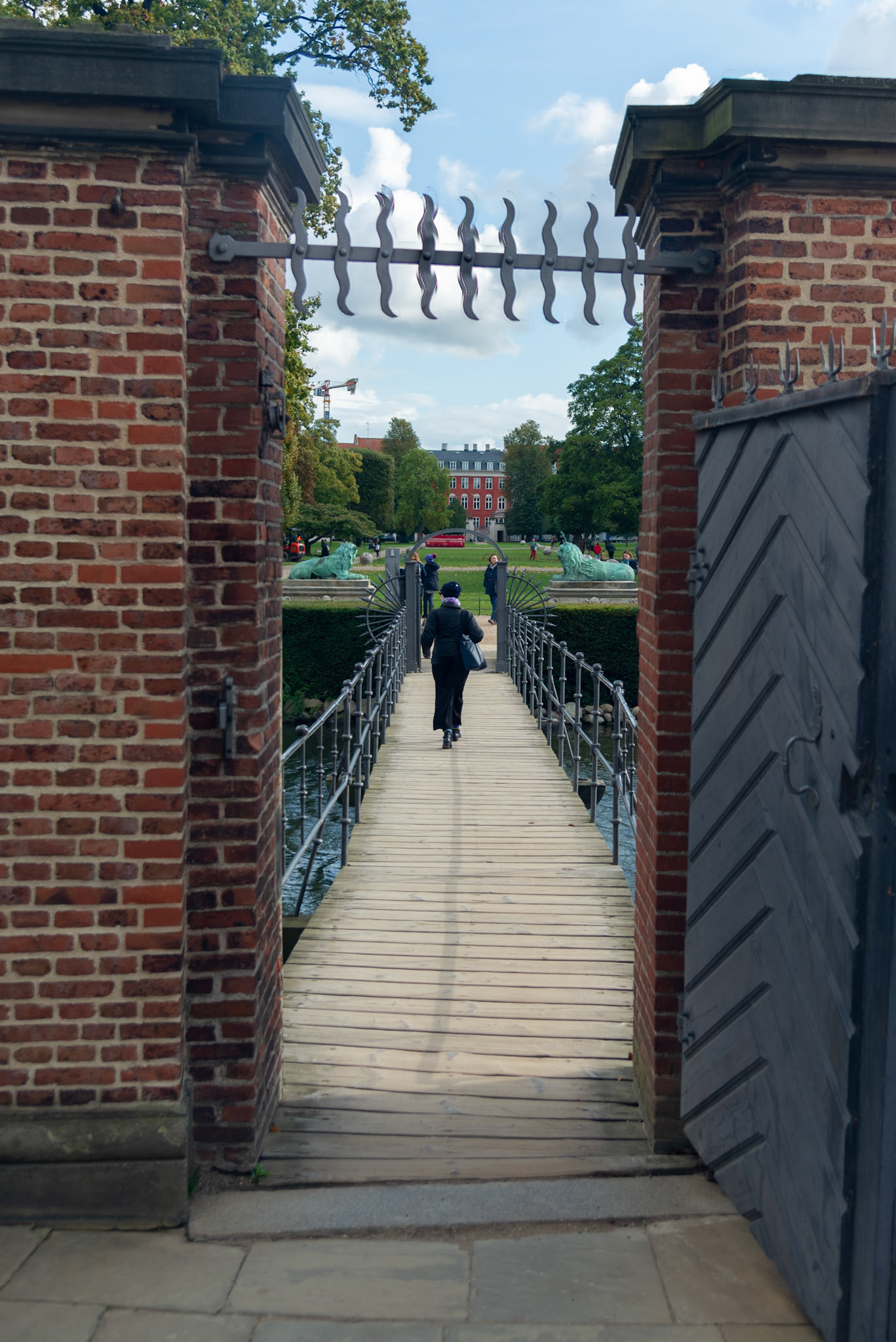 A young woman composs a photo of Magere Brug, from Blauw Brug, Amsterdam