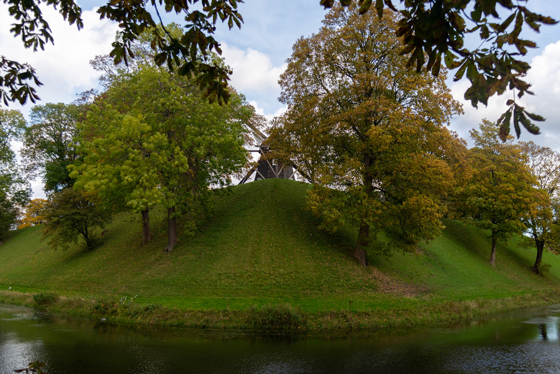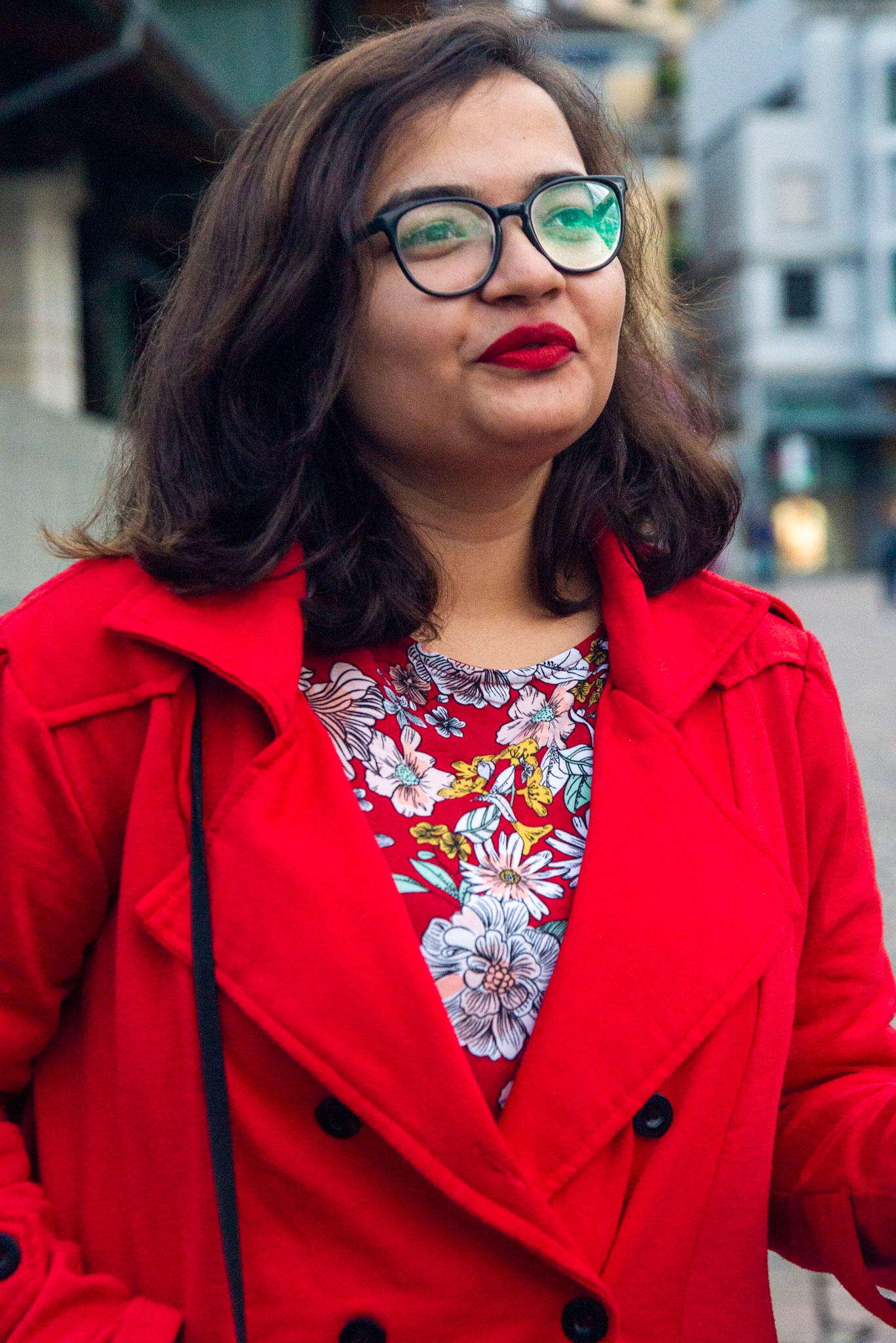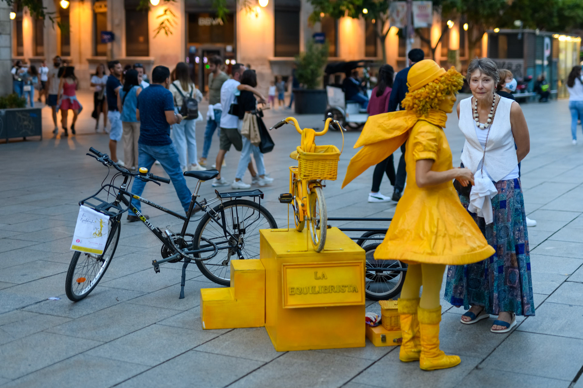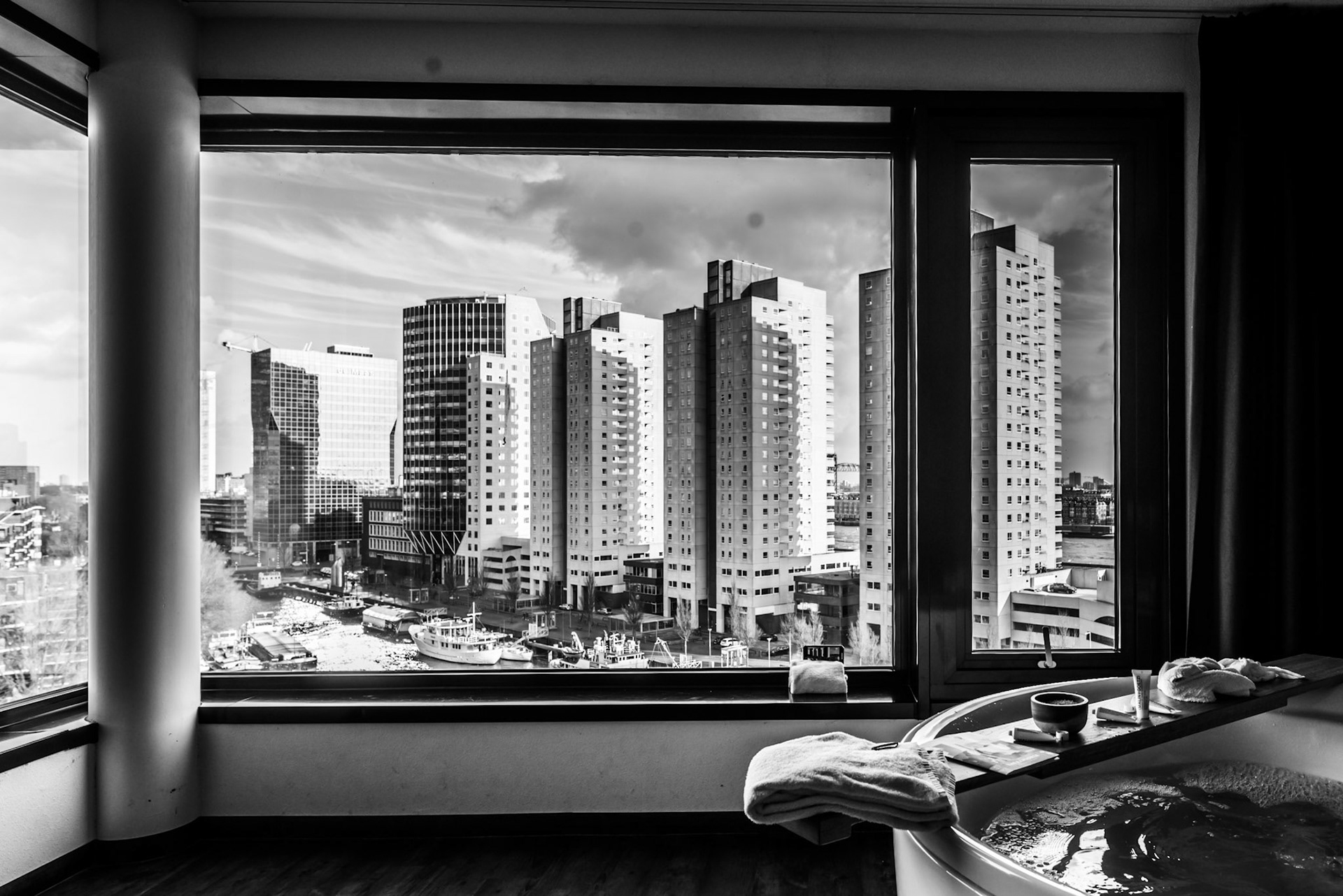 A young woman composs a photo of Magere Brug, from Blauw Brug, Amsterdam