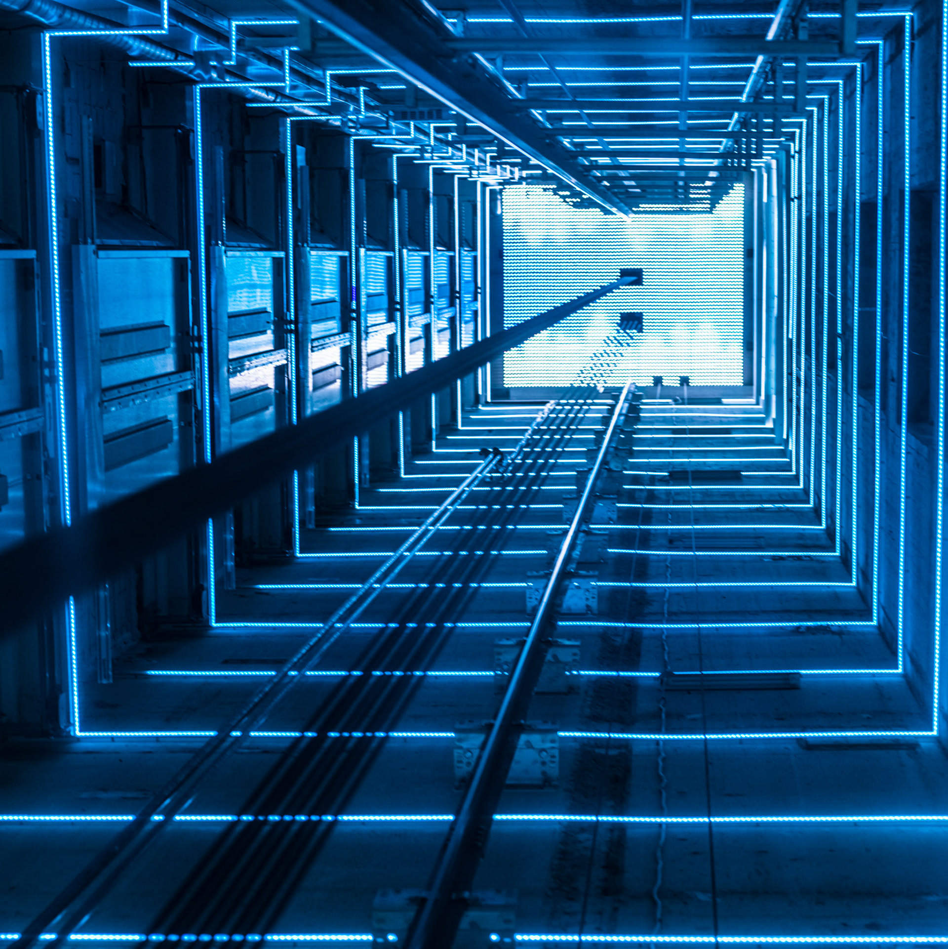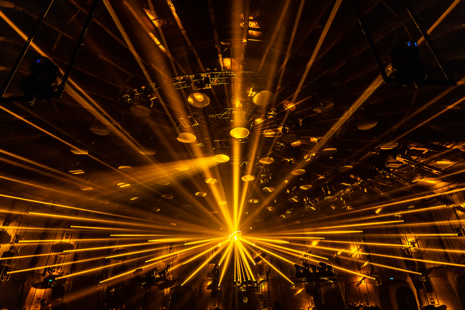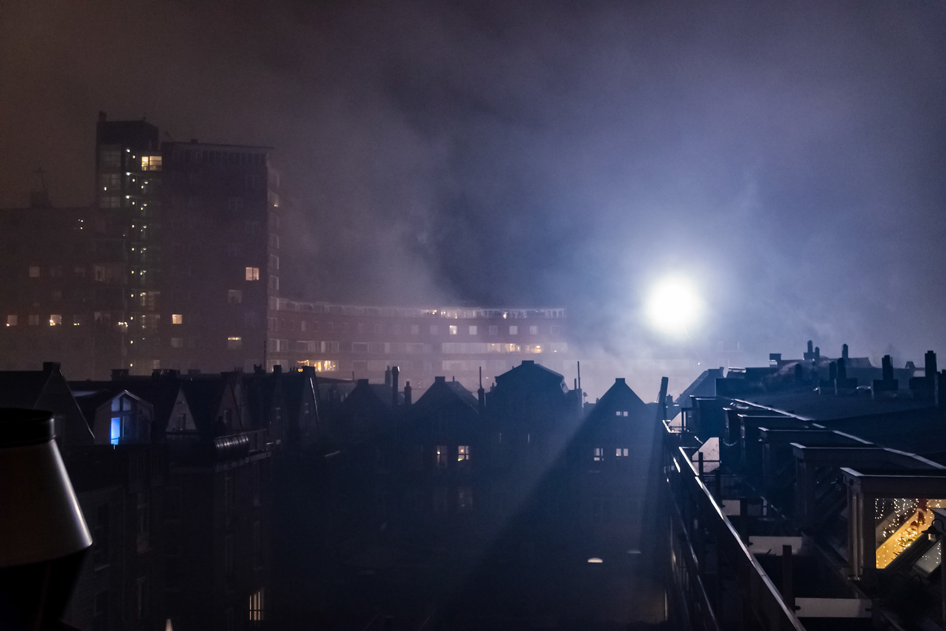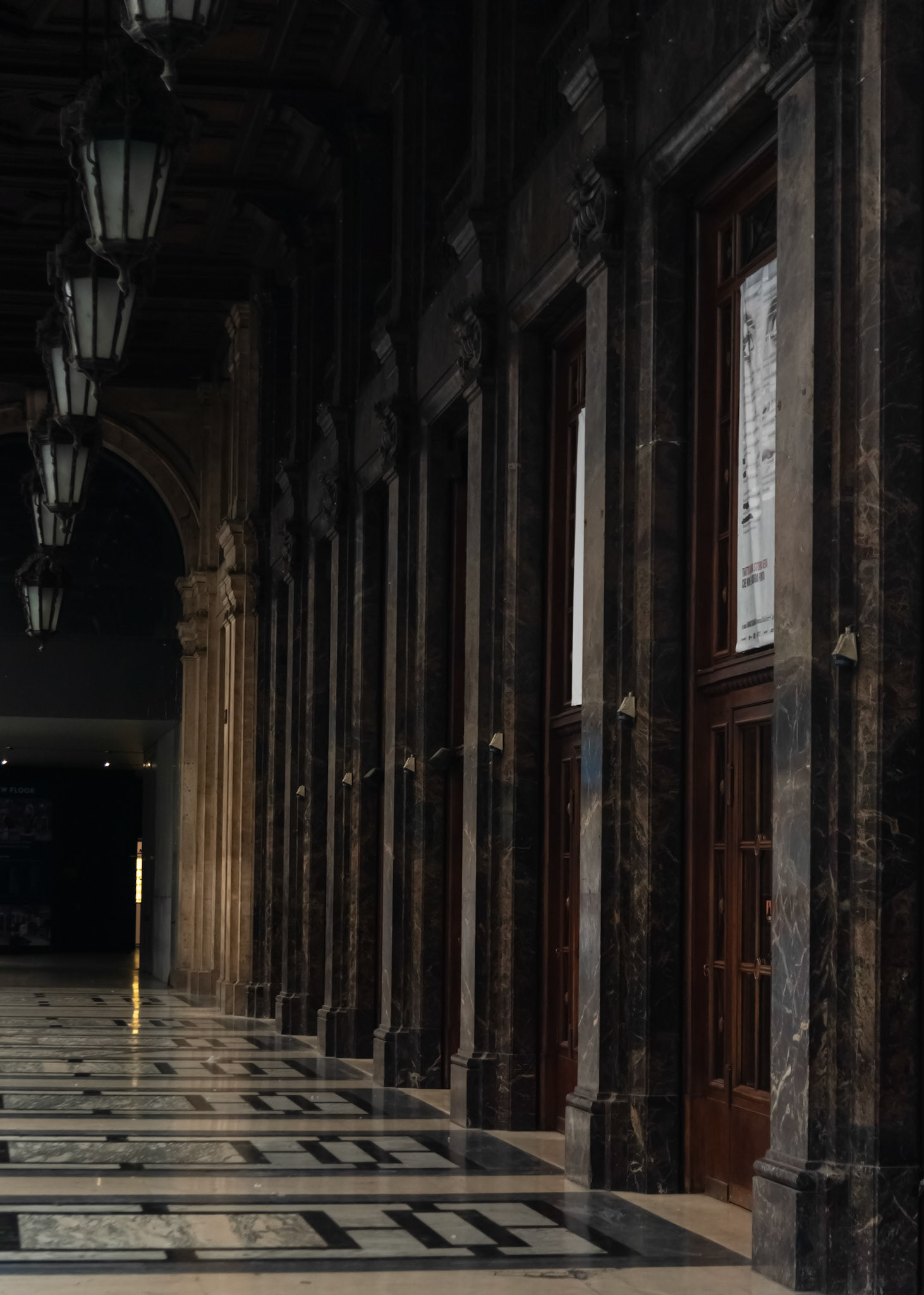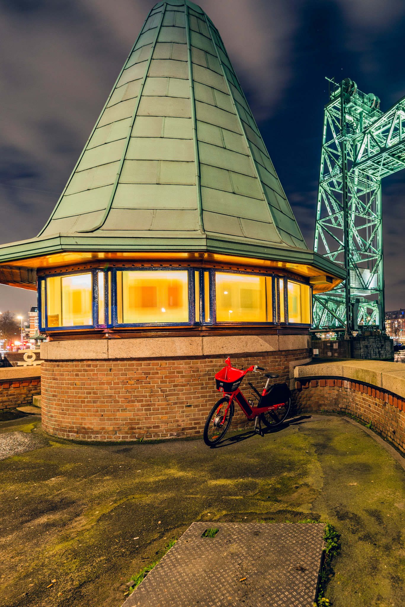 The brake light of a passing cycling underneath the Rijksmuseum.