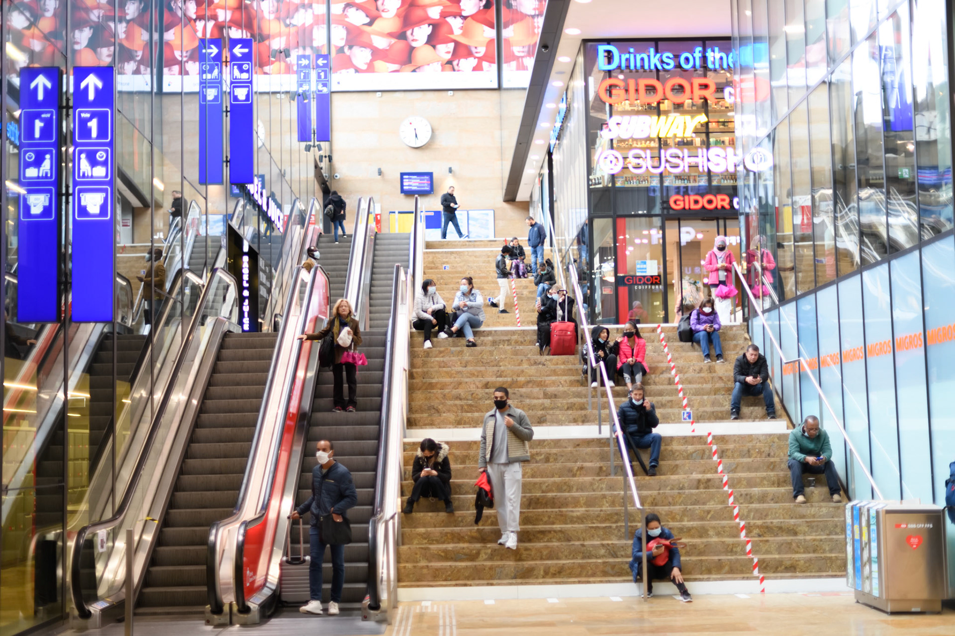 A train conductress prepares to depart Amsterdam Centraal Station for Haarlem