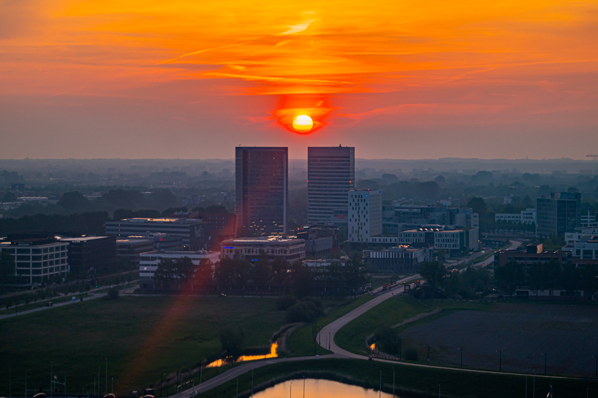 A padel boarder crosses the setting sun just after 22:00 in Scheveningen